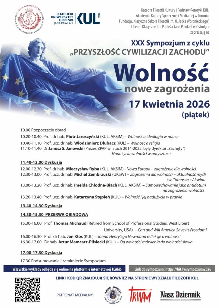 XXX Sympozjum z cyklu „Przyszłość Cywilizacji Zachodu” Wolność – nowe zagrożenia