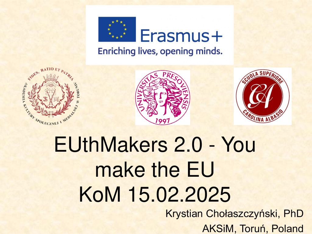 W dniach 14-15 września 2025 r. na Uniwersytecie Preszowskim (UNIPO) odbyło się spotkanie inaugurujące projekt EUthMakers 2.0 – You make the EU realizowany w ramach programu Erasmus+ (2024-3-SK02-KA210-YOU-000294645).