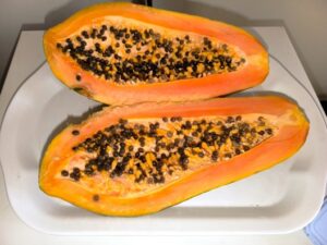 No journey is complete without tasting the local fruits — here, the vibrant papaya, a reminder of the sweetness of Nigerian hospitality and life.