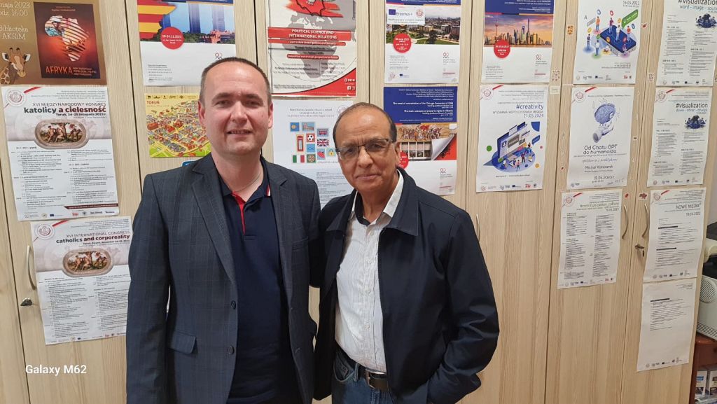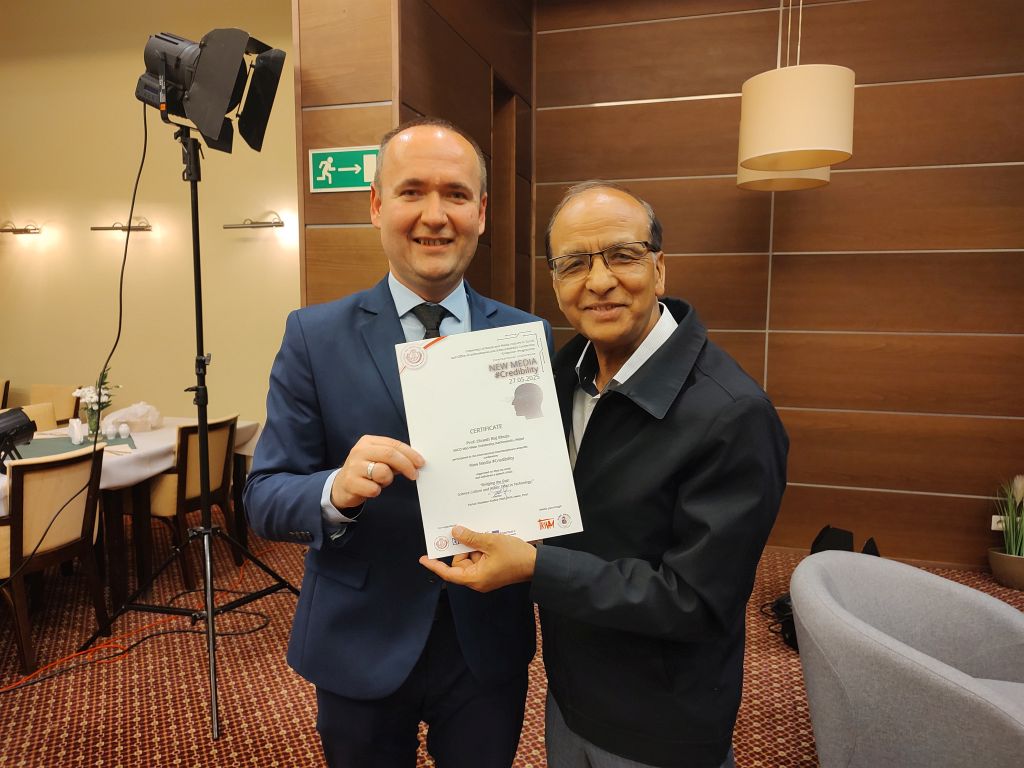 Ostatni tydzień był niezwykle istotny na Akademii Kultury Społecznej i Medialnej w Toruniu – Akademii Nauk Stosowanych. Dnia 27 maja 2025 r. odbyła się Międzynarodowa Interdyscyplinarna Konferencja Hybrydowa „Nowe Media. #Wiarygodność”. Gościem i prelegentem tego ważnego wydarzenia był prof. Dinesh R. Bhuju z Mid-West University (MU) w Nepalu. Pan Profesor przybył w ramach programu Erasmus+ i oprócz uczestnictwa w konferencji przeprowadził szereg wykładów tak dla studentów w AKSiM, jak i dla młodzieży z toruńskich szkół (np.: Zespół Szkół Mechanicznych Elektrycznych i Elektronicznych im. prof. Sylwestra Kaliskiego).
